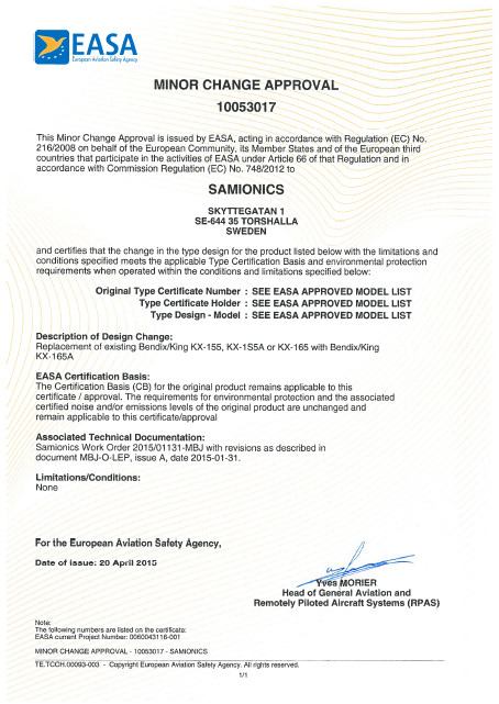 SAMIONICS EASA APPROVAL – PLUG AND PLAY REPLACEMENT AML AVAILABLE FOR MANY GA AIRCRAFT.